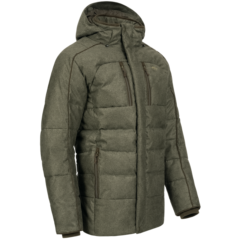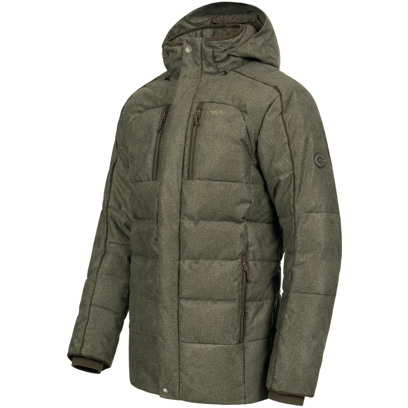 De Blaser Men’s VINTAGE Radiation Down Jacket Olive Mélange / Black is een stijlvolle en functionele jas gemaakt van een 2-laags Blaser Vintage-stof met een hybride isolatie. Geniet van de warmte en het comfort dankzij de ganzendons in de kernzone van het lichaam en op de bovenarmen. De Primaloft® Black Rise vulling in de schouder- en onderarmgebieden biedt maximale warmte, ademend vermogen en snelle droging. De jack is voorzien van een afneembare capuchon, een wind- en waterdicht membraan en diverse handige zakken. De gewatteerde naden en details van suède geven de jack een sportief vintage karakter. Bescherming en stijl komen samen in de Blaser Vintage Radiation Jas.