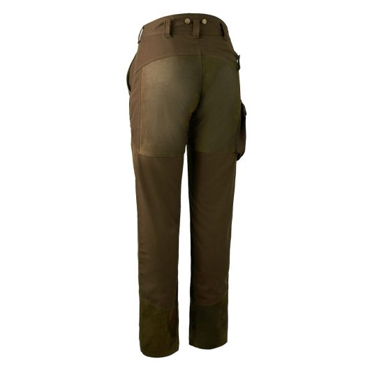 Deze aantrekkelijke lederen mix broek zorgt voor optimale mobiliteit dankzij de stretch stof die ook helpt het gewicht van de Buffalo nubuck leer te verminderen. De Deerhunter Lady Paris broek is zacht en duurzaam met een verstelbare tailleband en ademende mesh voering voor optimaal comfort. Dit functionele ontwerp heeft laadzakken, een hogere rug en een verstelbare beenlengte. De Lady Paris broek is de perfecte jachtmetgezel voor minder geluid en is onderhoudsvriendelijk. Je hebt alleen een natuurlijke bijenwas nodig om ze in goede staat te houden.