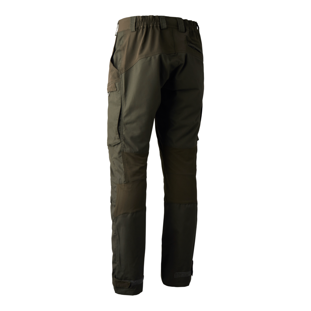 De Deerhunter Strike Trousers with membrane M Deep Green is een technische broek ontworpen voor serieus avontuur. De Deerhunter Strike-broek met Deer-Tex®-membraan biedt optimale bescherming tegen alle weersomstandigheden en past perfect bij de rest van de Strike-collectie. Waterdicht, winddicht en zeer ademend, met toegevoegde 4-way stretch voor meer mobiliteit, ze zijn ideaal voor actieve jachten. Er is voldoende opbergruimte voor jachtbenodigdheden, waaronder een veilige meszak. Voor een pasvorm op maat zijn ze voorzien van voorgevormde knieën, een elastische taille en verstelbare enkelsluitingen. Ook voorzien van ventilatie aan de achterkant van de dij.