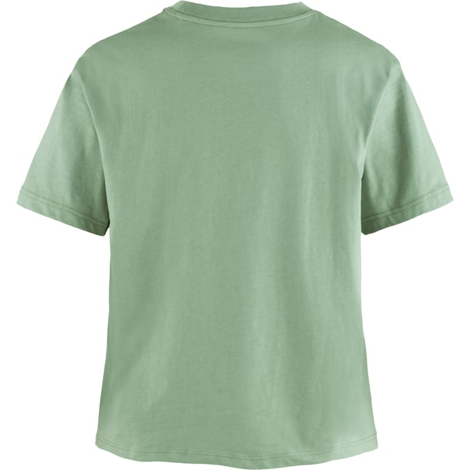 Het Fjällblomster Logo T-shirt met korte mouwen is van biologisch katoen met een mooie print van Zweedse bergbloemen op de voorkant. Het is een iets korter model met een ronde hals, perfect voor warme, relaxte zomerdagen in de buitenlucht.