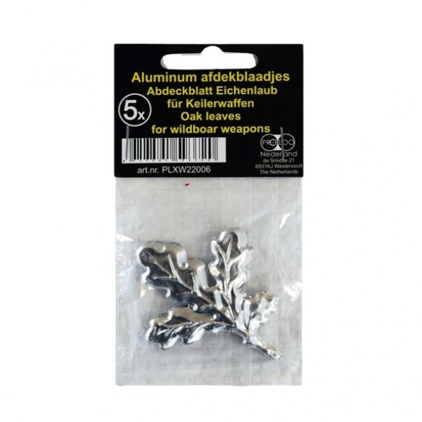Geweiplankversiering zilverkleurig eikenblad van dun aluminium per 5 stuks verpakt.