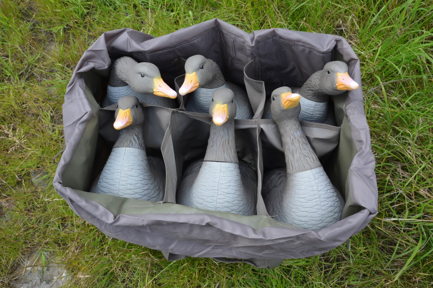 Aangeraden wordt om de full body ganzenlokkers in deze Prodecoys 6-slot bag te vervoeren voor het beste behoud van de lokganzen.