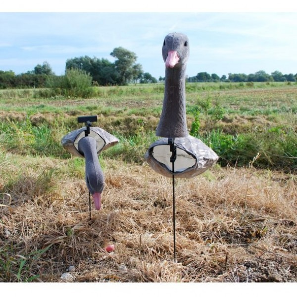 De ProLoo Windecoy Grauwe Gans set 10 stuks bestaat uit 6x kop omlaag (foeragerend)/4x kop omhoog (oplettend). De Windecoys bewegen op een natuurlijke wijze in de wind. Overtrekkende ganzen zullen zo gemakkelijker bij een lokstal invallen. Bij voorkeur plaatsen in de wind waardoor de Tyvek sock zich opblaast, op deze manier ontstaat een full body. Door het gebruik van Tyvek en glasfiber is het geheel licht van gewicht en handig te transporteren. De Tyvek sock is voorzien van een 3D fotoprint, hierdoor zijn deze haast niet van de echte ganzen te onderscheiden.