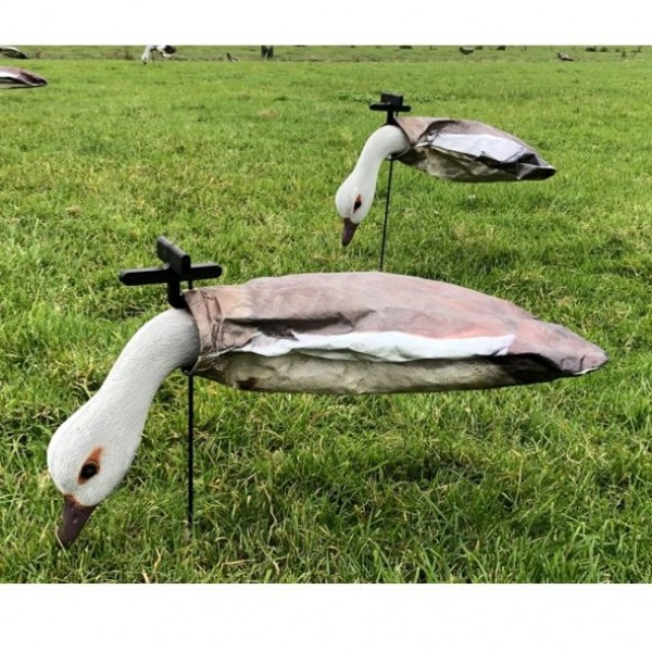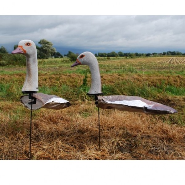 De ProLoo Windecoy Nijlgans set 10 stuks bestaat uit 6x kop omlaag (foeragerend)/4x kop omhoog (oplettend). De Windecoys bewegen op een natuurlijke wijze in de wind. Overtrekkende ganzen zullen zo gemakkelijker bij een lokstal invallen. Bij voorkeur plaatsen in de wind waardoor de Tyvek sock zich opblaast, op deze manier ontstaat een full body. Door het gebruik van Tyvek en glasfiber is het geheel licht van gewicht en handig te transporteren. De Tyvek sock is voorzien van een 3D fotoprint, hierdoor zijn deze haast niet van de echte ganzen te onderscheiden.