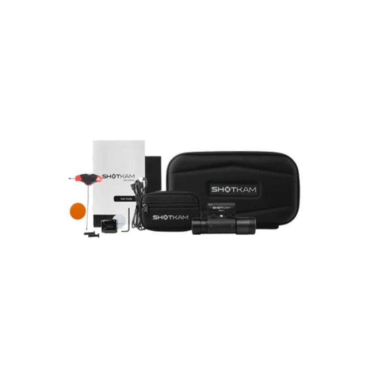 De Shotkam wordt geleverd in een zwarte systeemkoffer met een kaliber 12 montage, USB oplaadkabel, ingebouwde 64 GB geheugenkaart, sleutel, stekker en diverse reserve onderdelen.