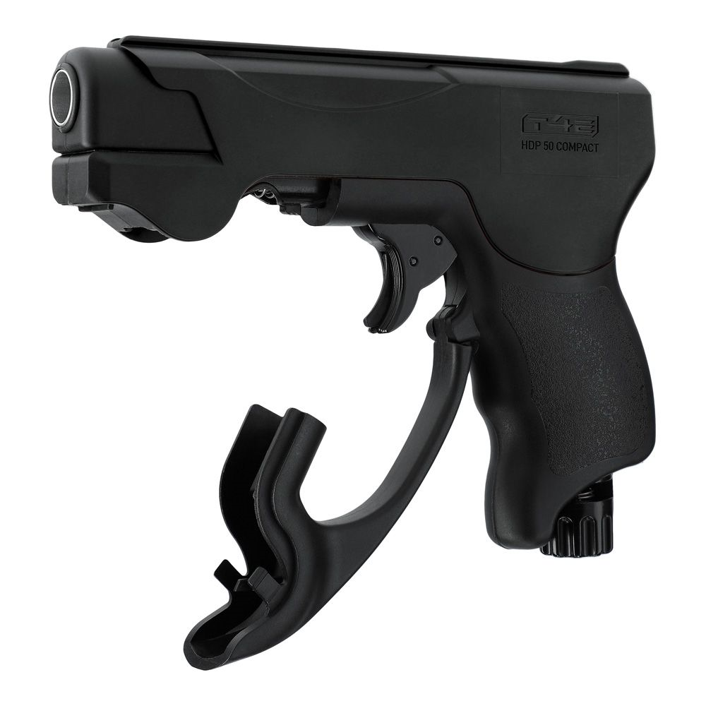 De Compact versie van de succesvolle Tactical Pistol 50 combineert de sterke punten van een baanbrekende markerpistool in een compact en ruimtebesparend ontwerp. Het biedt een bijzonder hoog niveau van veiligheid en inzetbaarheid dankzij de direct toegankelijke vorm, de automatische trekkerbeveiliging en het ''Quick-Piercing Systeem''. Dit systeem maakt het mogelijk om de 8g Co2-capsule te laden zonder deze direct te doorboren. Een lichte tik op de onderkant van de grip activeert de capsule, waardoor drukverlies van de capsule en uitdroging tijdens opslag wordt voorkomen.